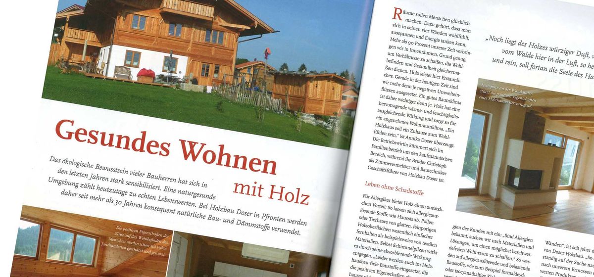 - Artikel über das gesunde Wohnklima der Doser-Häuser im "Allgäuer Wirtschaftsmagazin"